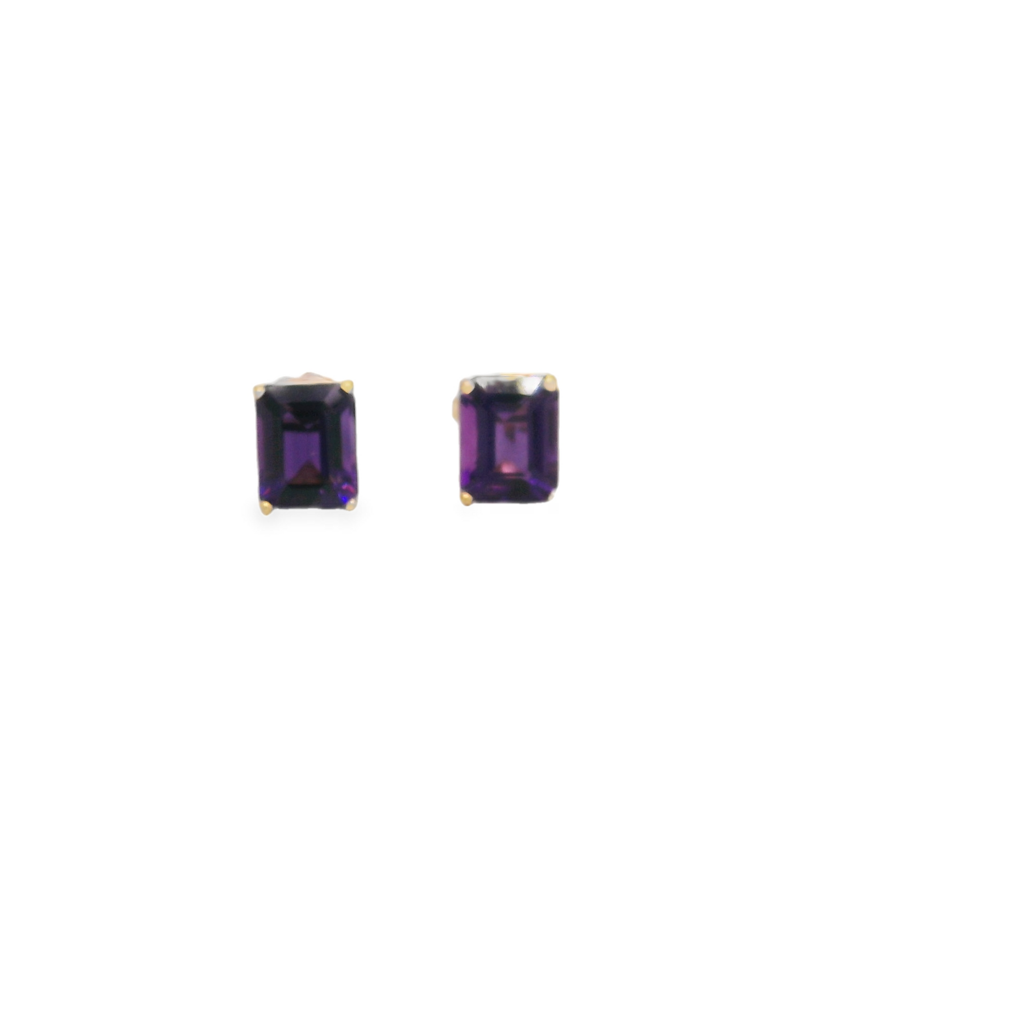 14kt. y.gold ppost 9x7mm emerald cut Amethyst