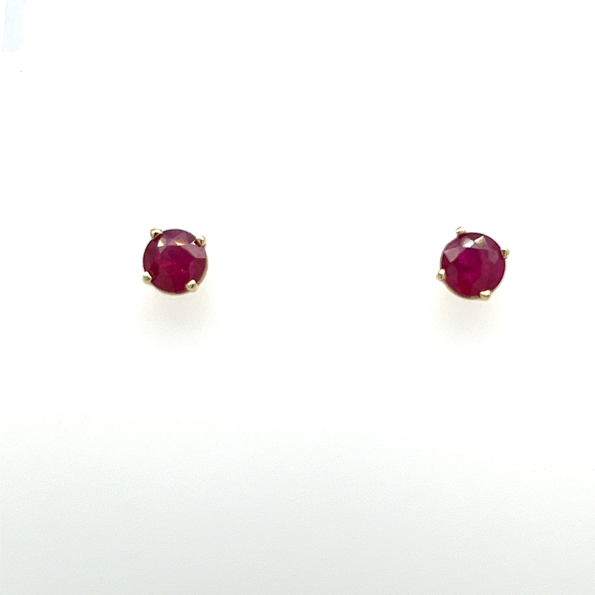 Lady's Yellow 14 Karat Stud Earrings With 2=5.40Mm Round Rubys