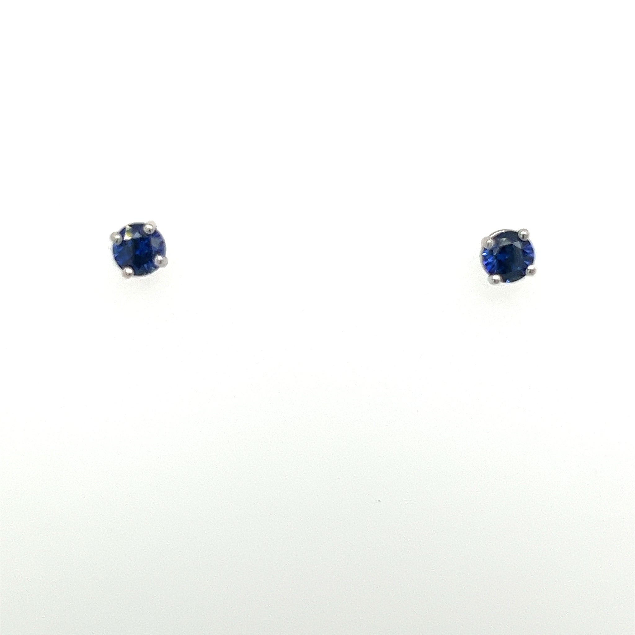Lady's White 14 Karat Stud Earrings With 2=3.50Mm Round Sapphires