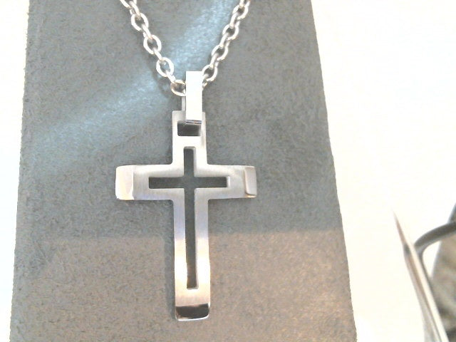 Stainless Steel Polished & Brushed Cut-out Cross 20" Chain