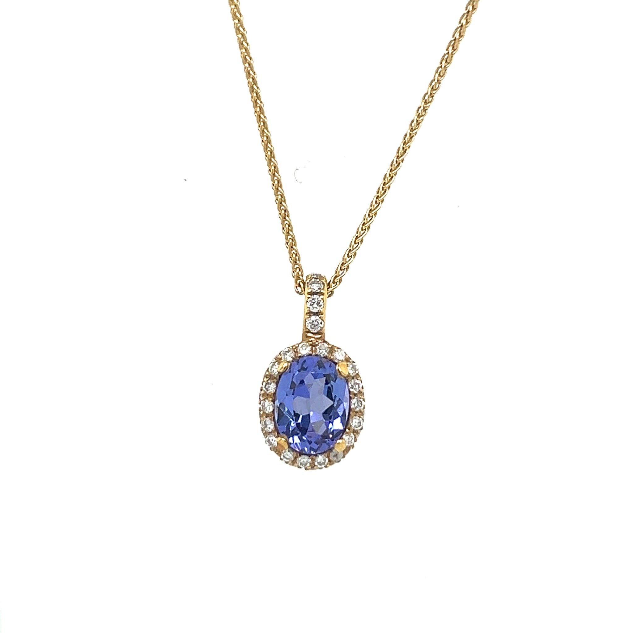 Lady's Yellow 18 Karat pend 1.53Ct Oval Tanz 40=0.32Tw Rd H Si1 Diamonds