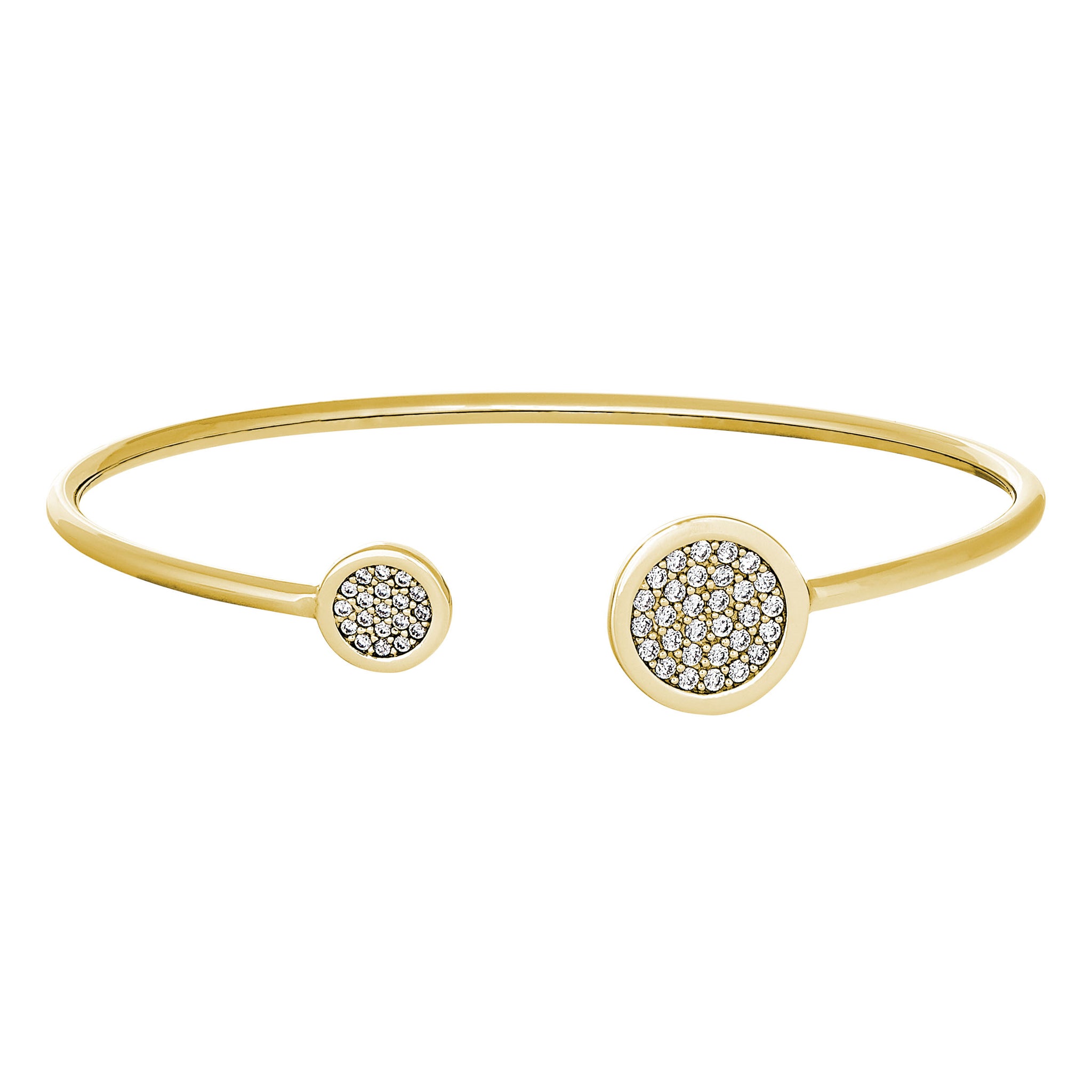 Gold Finish Sterling Silver Big Circle and Little Circle on Either End Flexible Cuff Bracelet with Simulated Diamonds