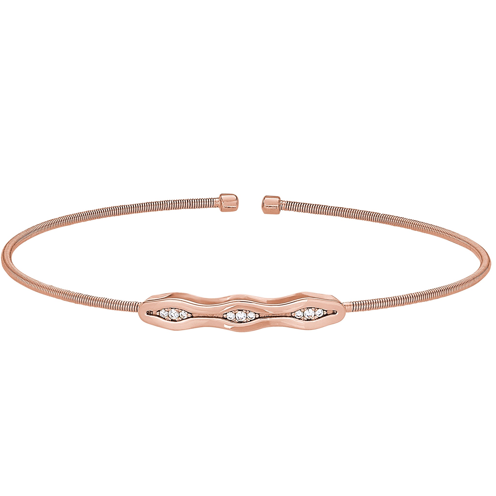 Rose Gold Finish Sterling Silver Cable Cuff Bracelet with Simulated Diamonds & Polished Finish