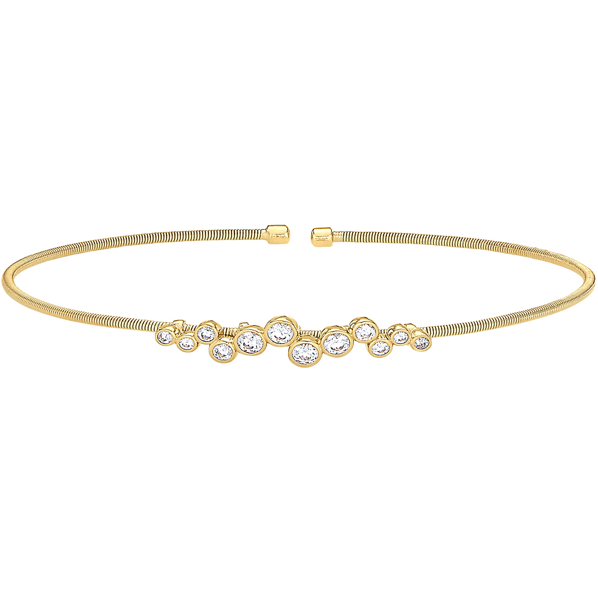 Enhance your style with this Italian-made sterling silver cable cuff bracelet in gold finish. Featuring a bubble pattern of bezel-set simulated diamonds