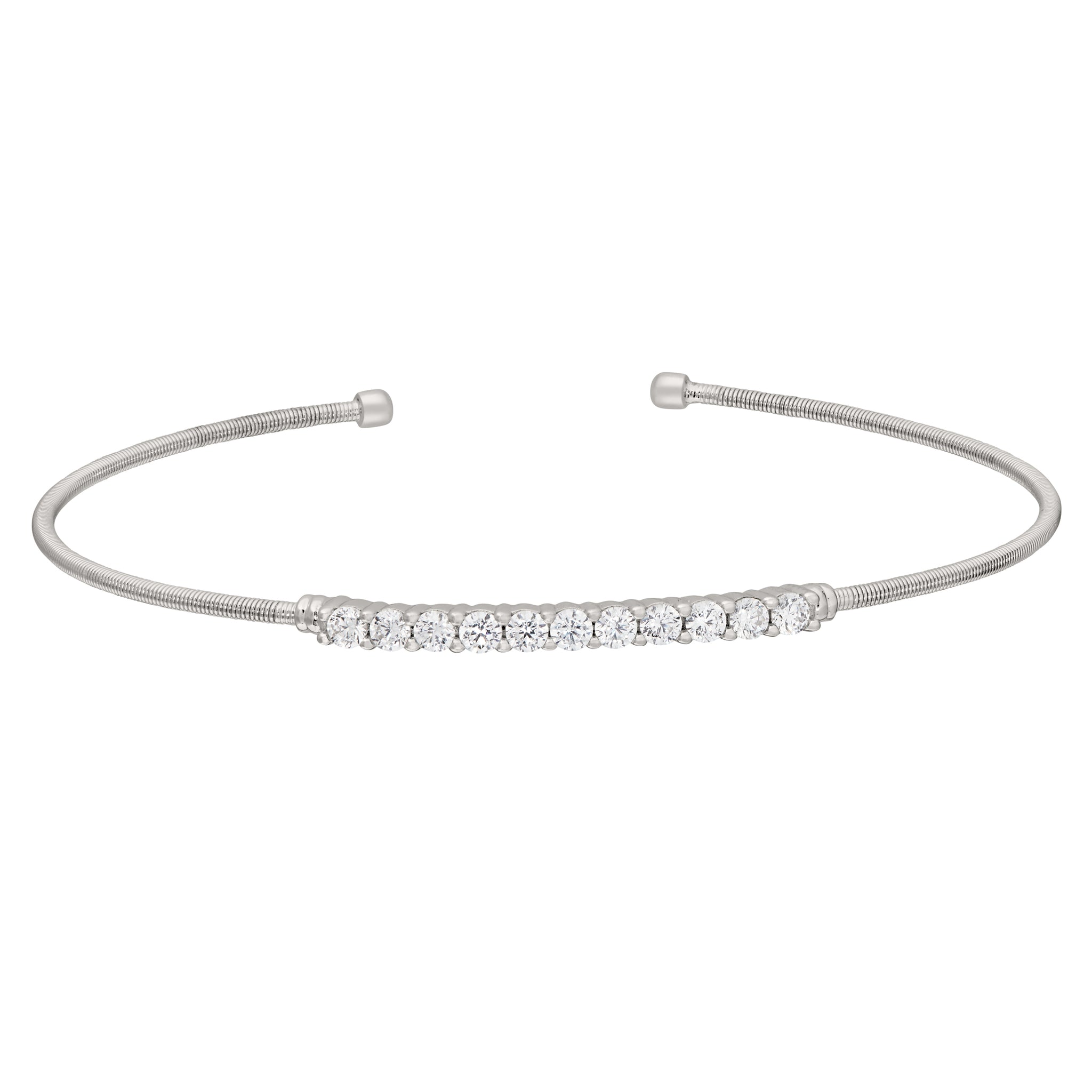 Enhance your style with this Italian-made sterling silver single-cable cuff bracelet in rhodium finish. Featuring a single row of 11 prong-set simulated diamonds
