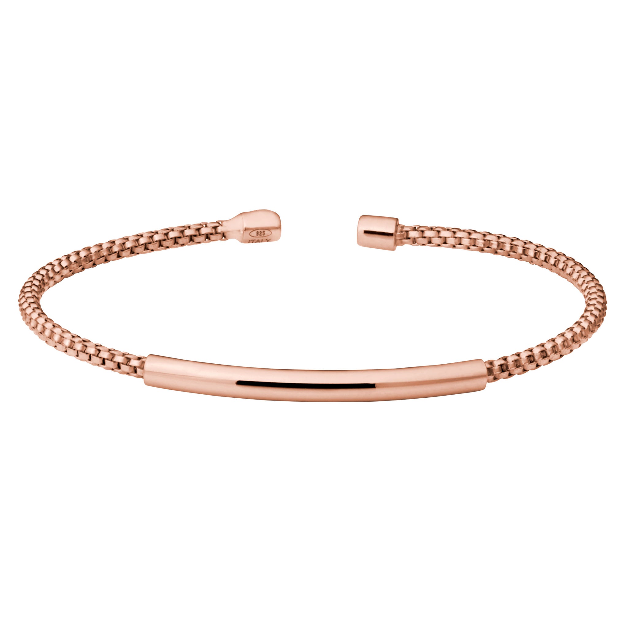 Rose Gold Finish Sterling Silver Rounded Box Link Cuff Bracelet with High Polished Bar