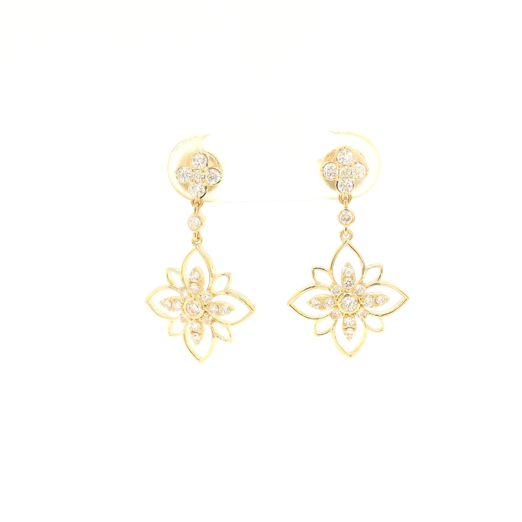 10kt. y.gold floral dangle earrings 38=.55ct H SI2