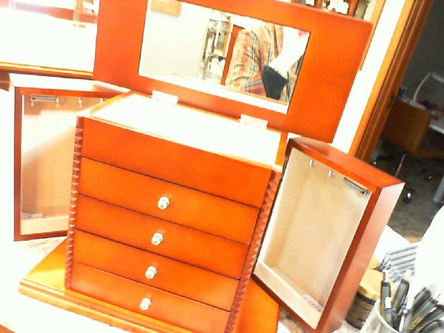 Mirrored Walnut Jewelry Box with magnetic side doors