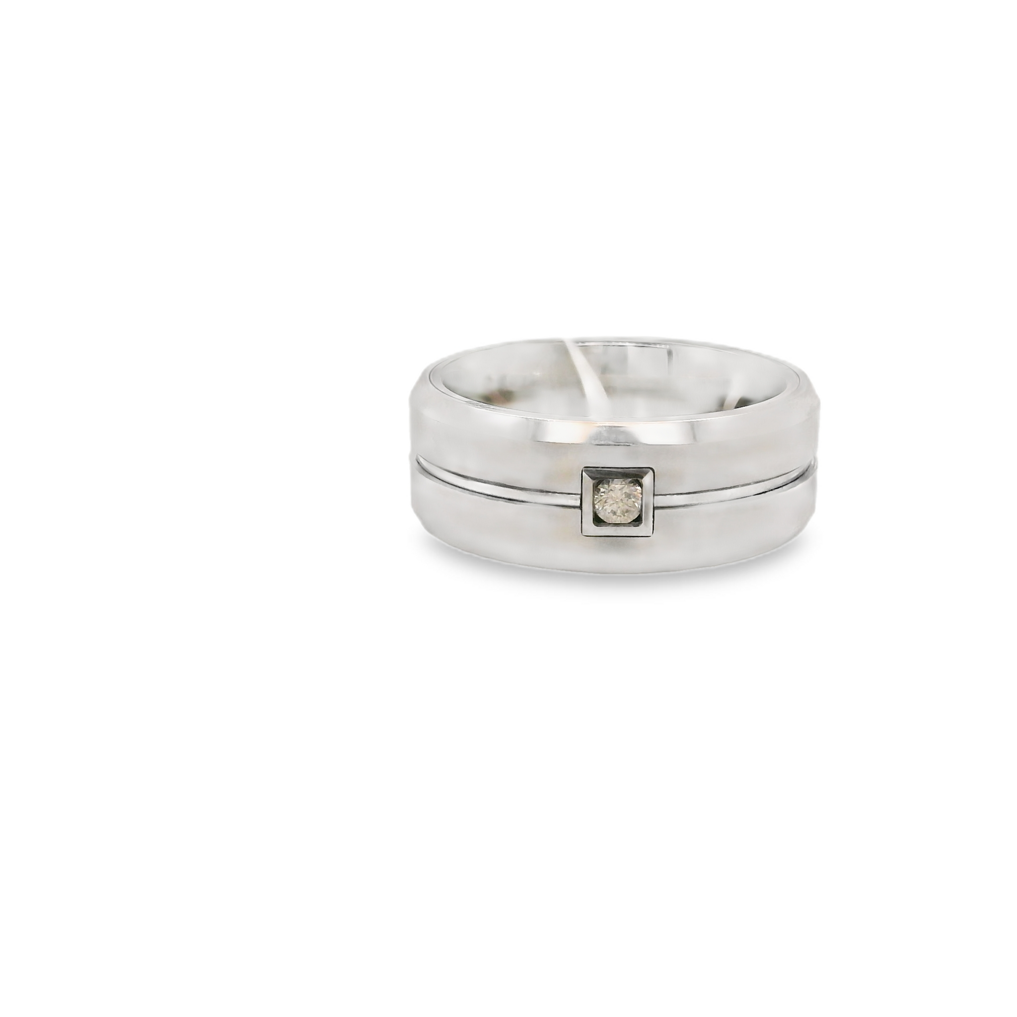 Gent's White Tungsten Satin Comfort Altnerative Metal Bands With One 0.05Ct Round Diamond