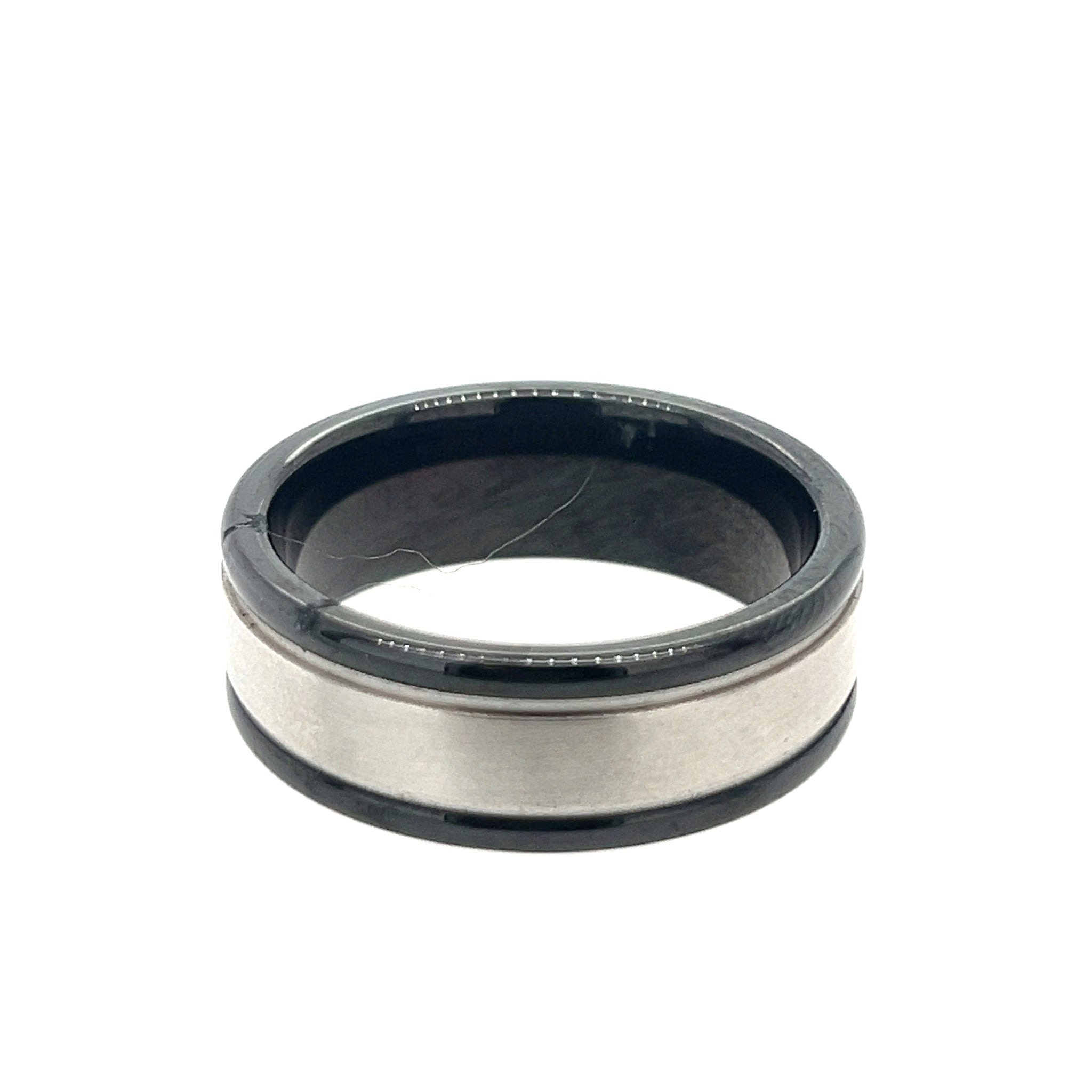 Gent's Black/White Tungsten/14Kt. Linear Comfort Fit Altnerative Metal Bands Size 10