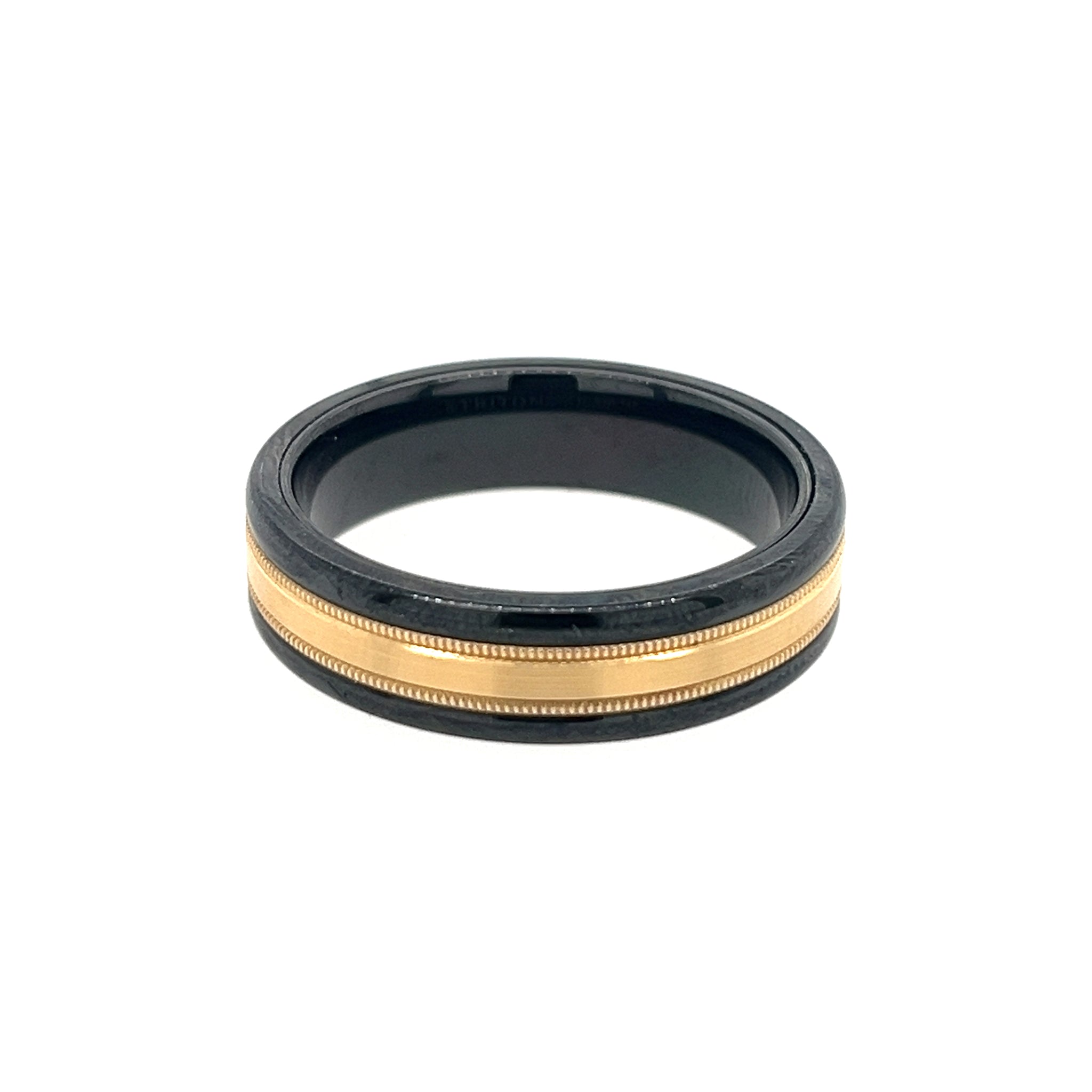 Gent's Black/Yellow Tungsten/14Kt. Comfort-Fit Altnerative Metal Bands Size 10