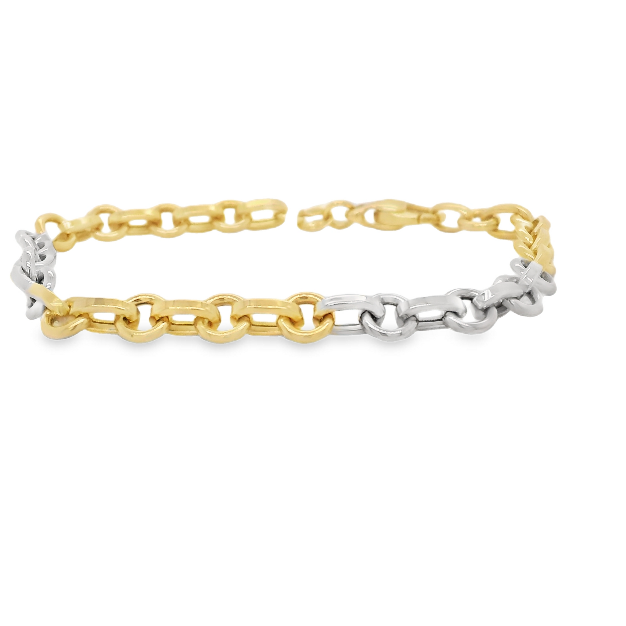 This elegant 7.5-inch bracelet features a sophisticated two-tone 14kt metal link design, blending classic style with modern appeal. Its polished finish enhances versatility, making it an ideal accessory for both everyday wear and special occasions. Crafted with precision, this piece offers lasting quality and refined charm.