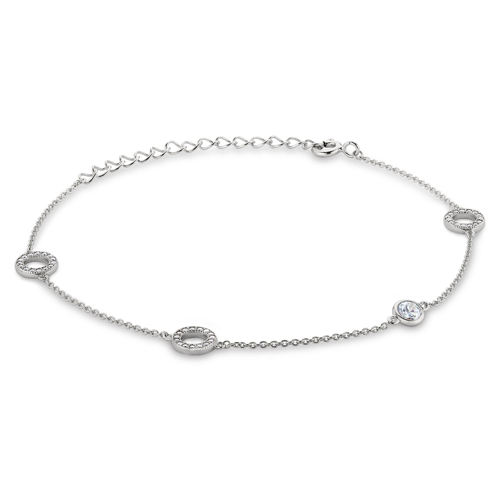 Adorn your wrist with elegance: platinum finish sterling silver bracelet featuring micropave open circles and bezel-set simulated diamonds. Adjustable from 7 to 9, it offers versatility and sophistication.