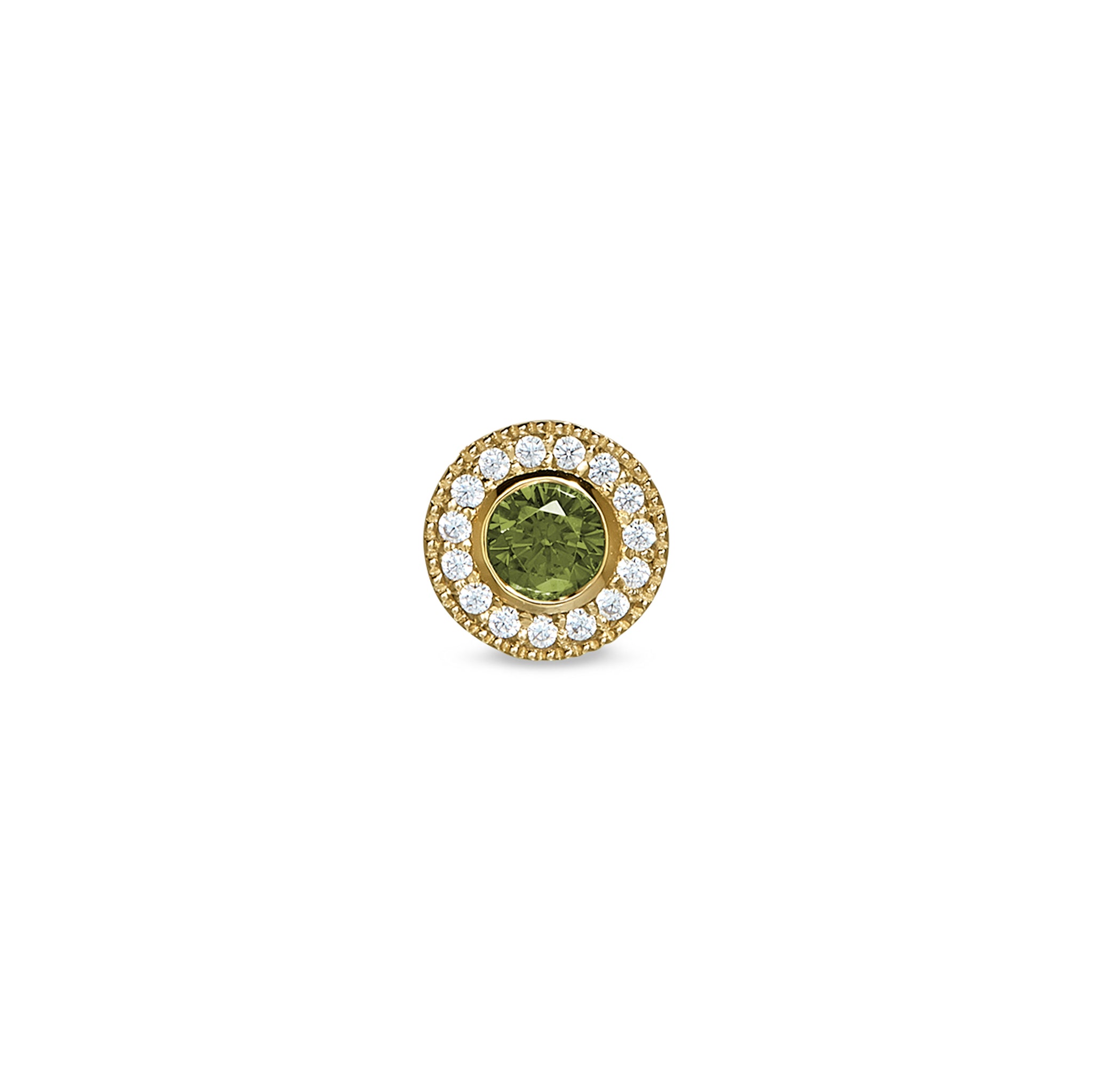 Elevate gifting with our gold vermeil finish sterling silver pendant charm featuring an August birthstone simulated peridot & simulated diamond halo.