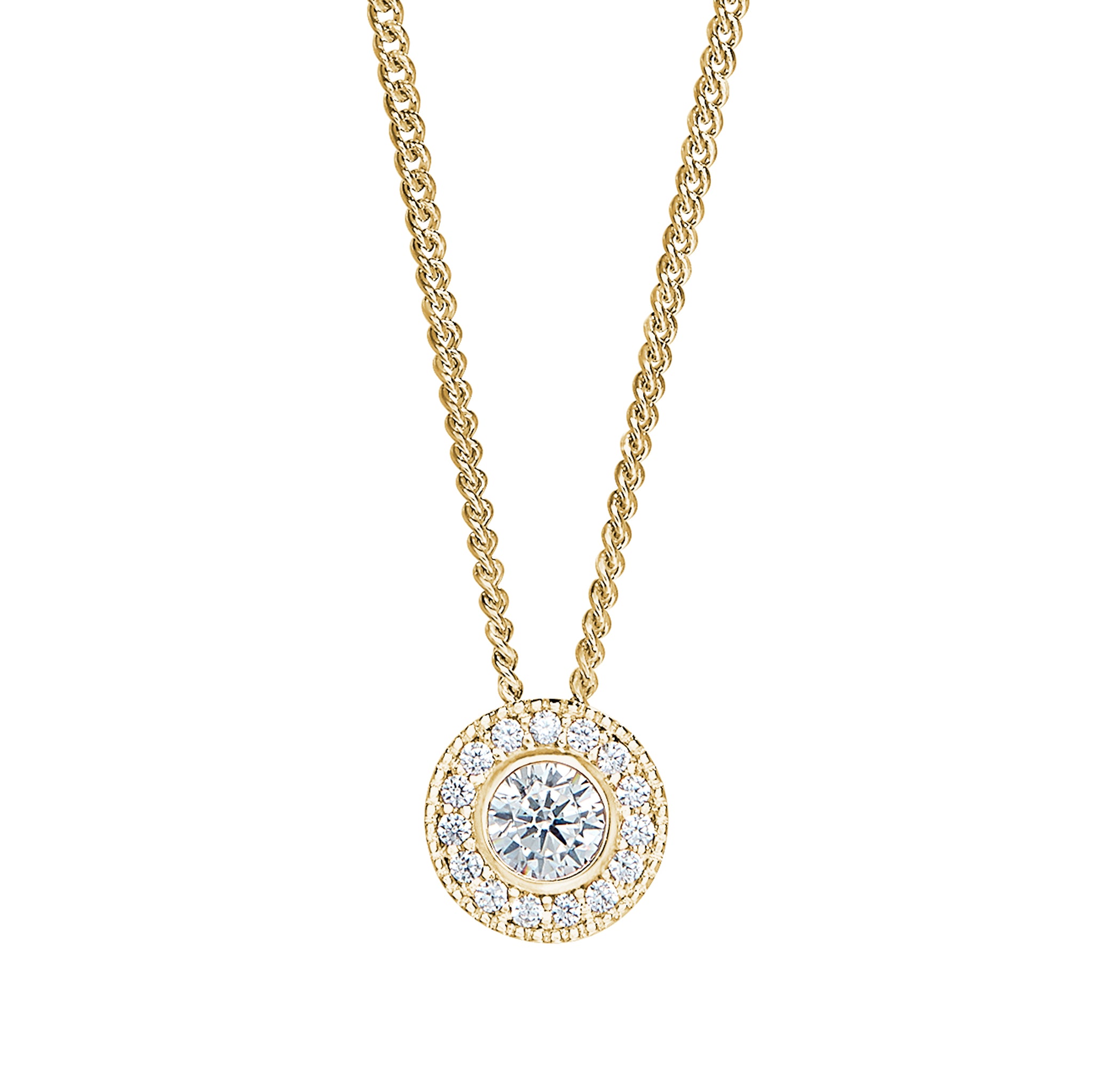 Elevate your gifting game with our gold vermeil finish sterling silver birthstone pendant. Adorned with an April simulated diamond and sparkling simulated diamond halo.