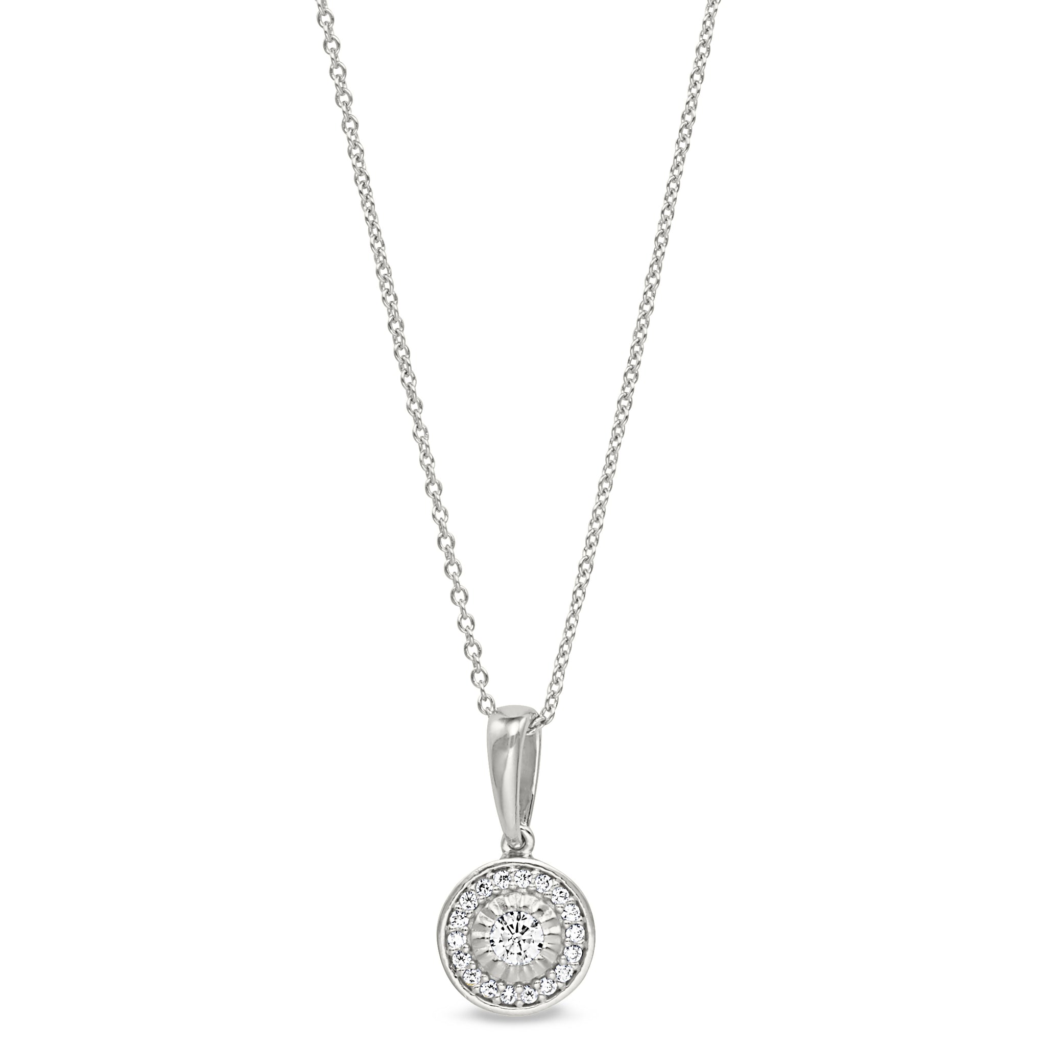 Platinum Finish Sterling Silver Micropave Halo Pendant with Simulated Diamonds on 16-18 Adjustable Chain