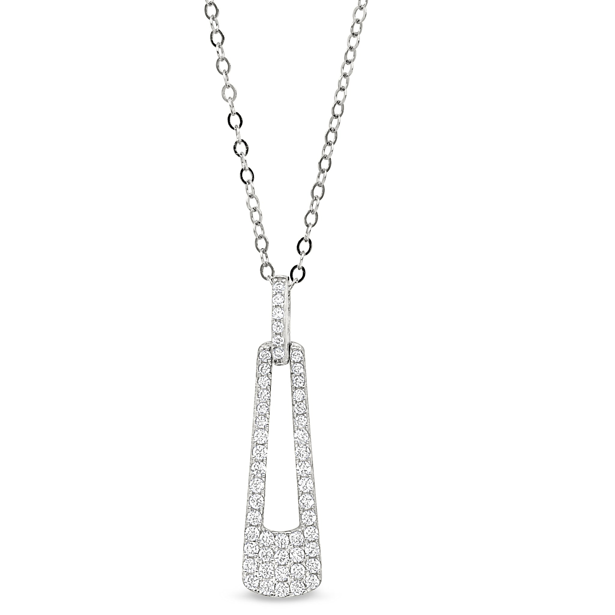 Make a bold statement with our platinum finish sterling silver door knocker pendant. Sparkling simulated diamonds add elegance and glamour, suspended on an 18 chain for effortless style.