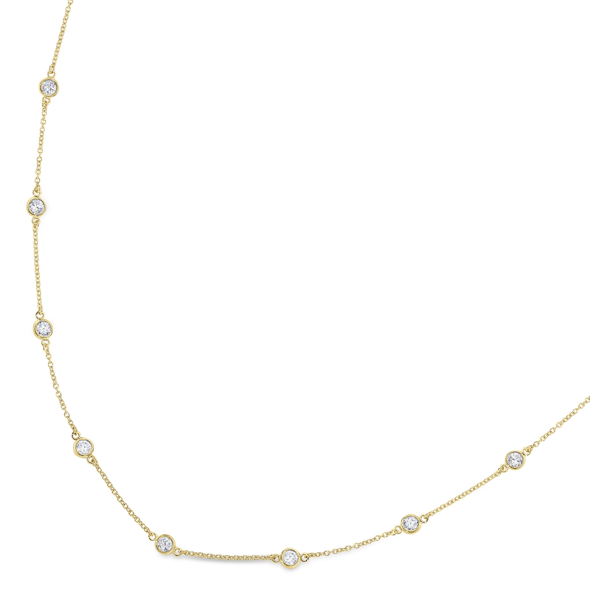 Add a touch of elegance with our gold vermeil finish sterling silver station chain. Featuring bezel-set simulated diamonds, its a versatile and luxurious accessory for any outfit.