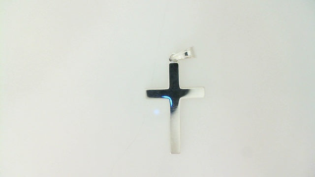 Sterling Silver Rhod Polished Flat Cross Pendant