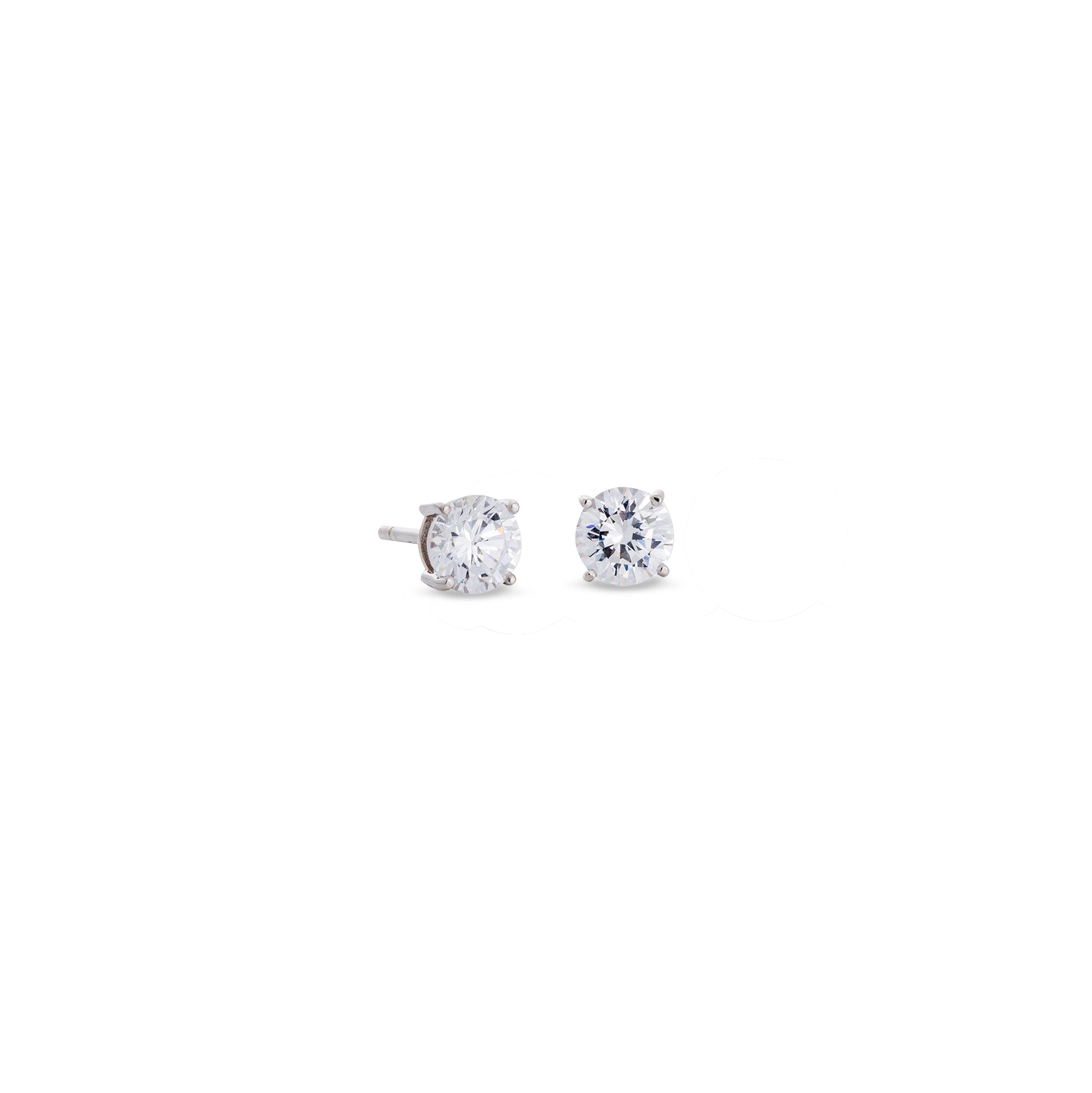 Elevate your style with our platinum finish sterling silver earrings. Prong-set with round simulated diamonds measuring 1/2 CTTW, they exude timeless elegance and luxury.