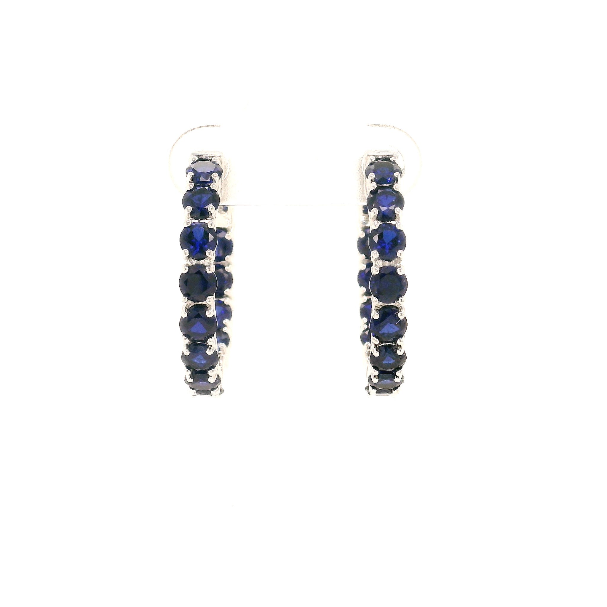 sterling silver locking hoop 3.5mm created sapphires