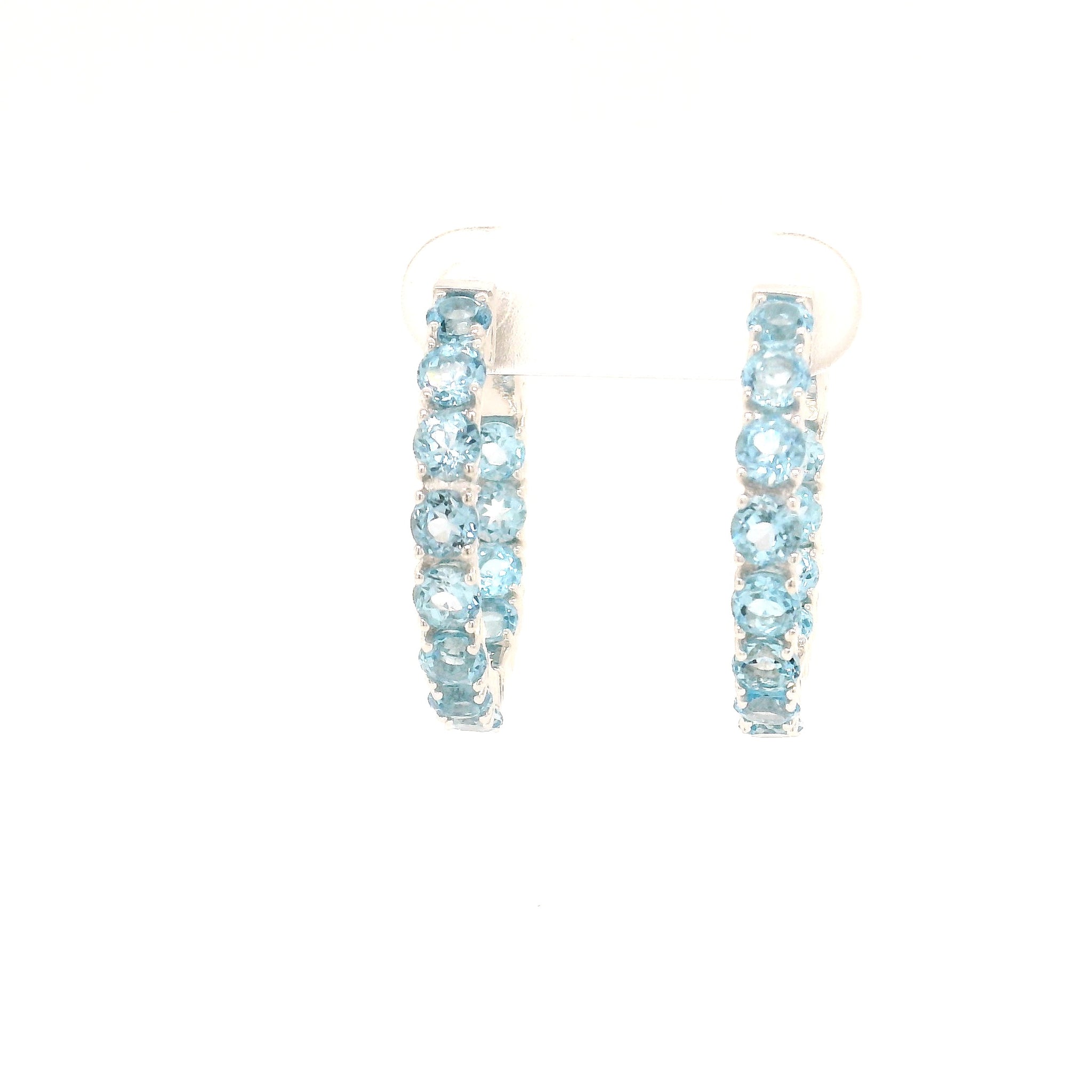 sterling silver locking hoops 3.5mm swiss bl. topaz